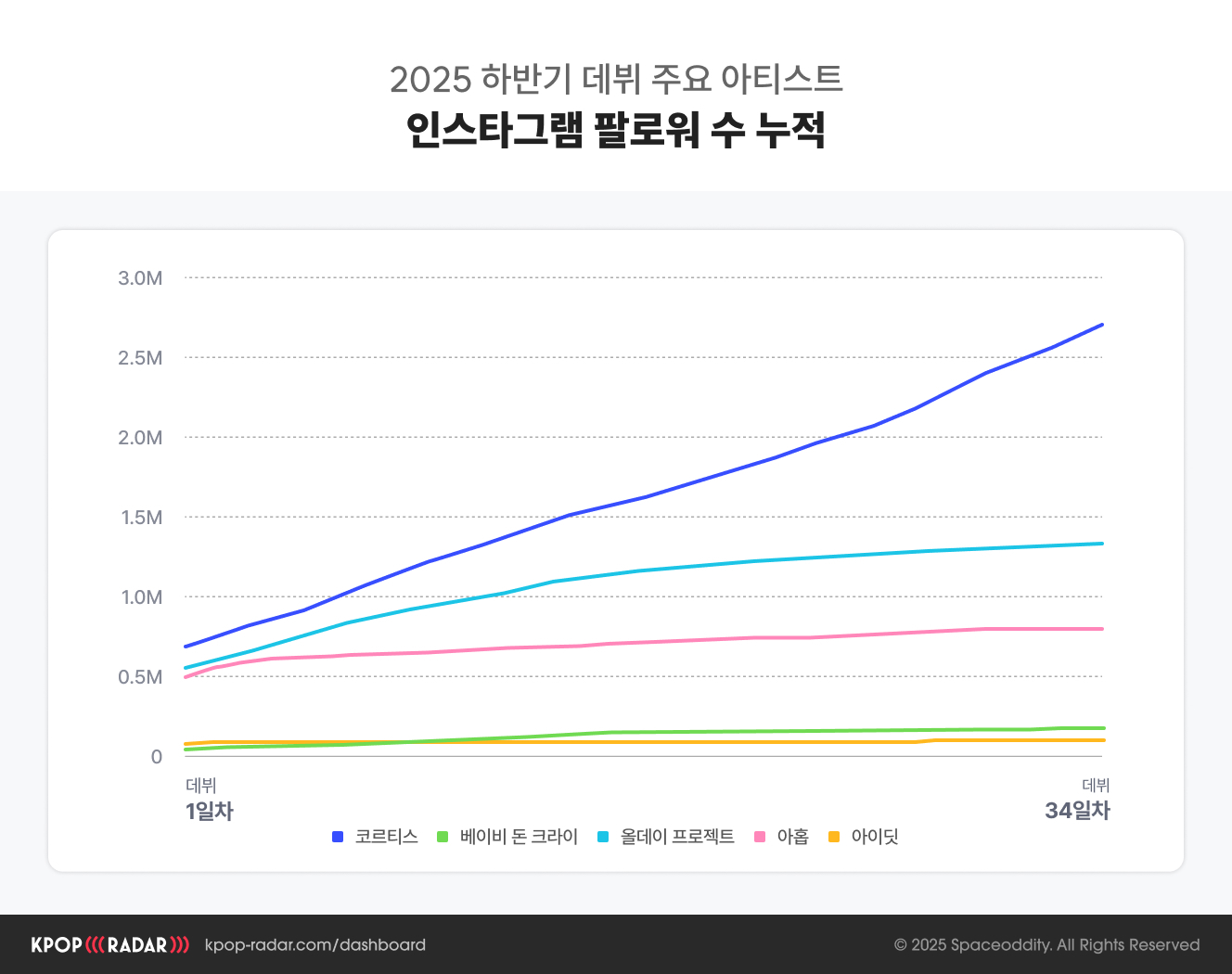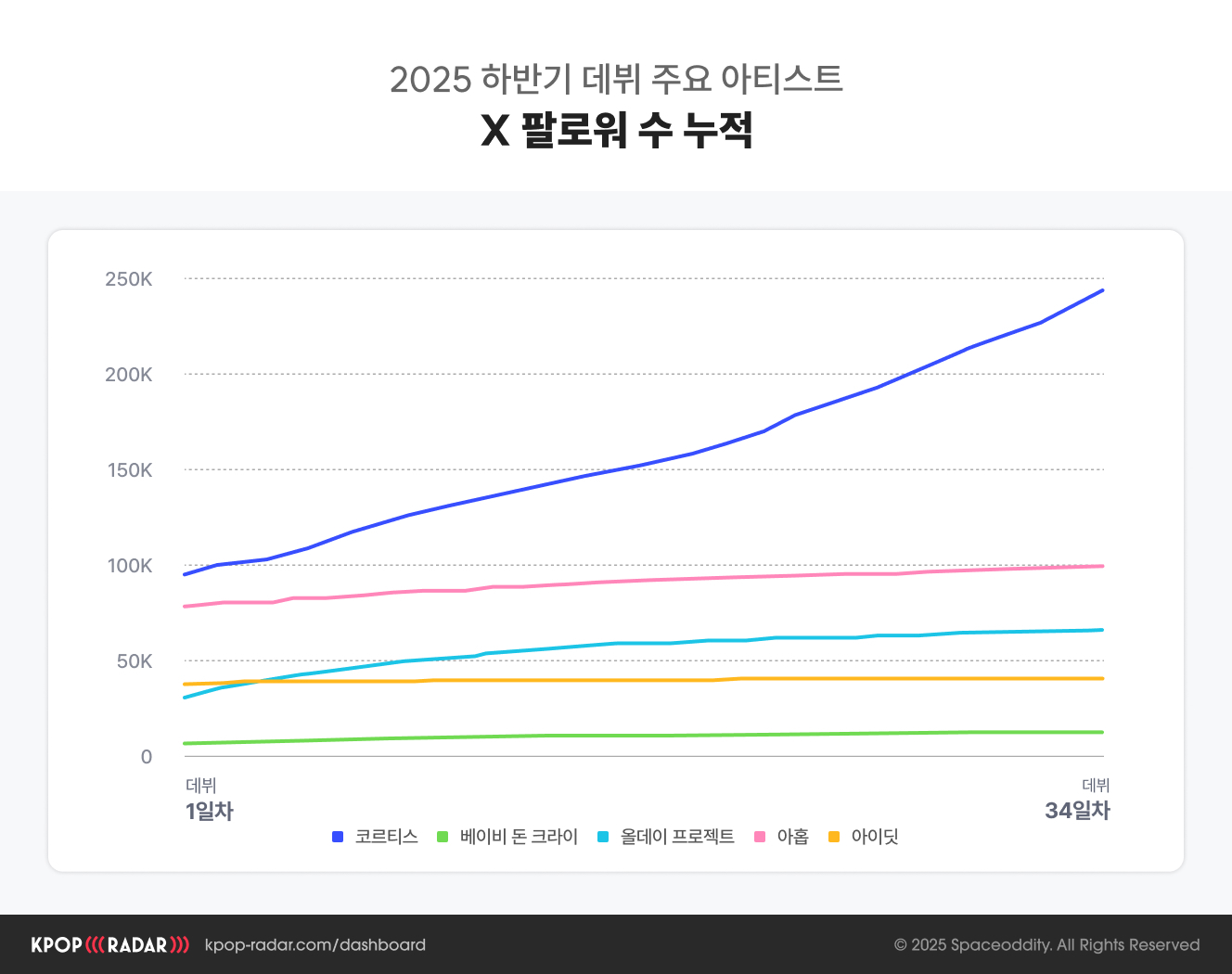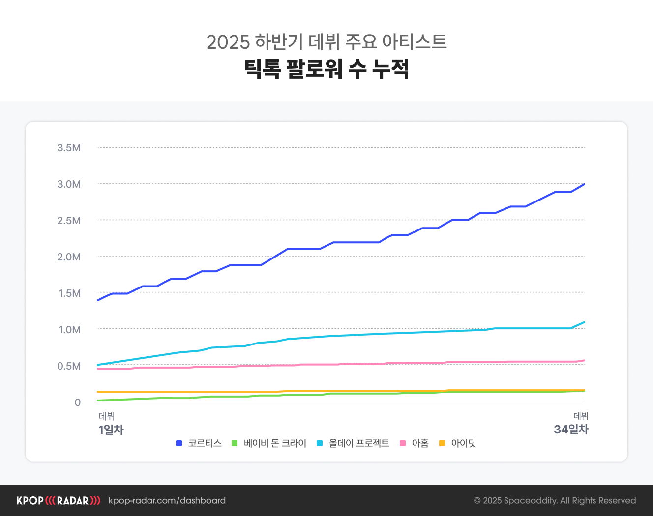 ๋ํ ๊ตญ๋ด, ๊ธ๋ก๋ฒ, ๋์ค, ์ฝ์ด ๋ฑ ํฌ๋ค ์ธ๊ทธ๋จผํธ๋ณ ์ธ๊ธฐ ๋ญํน์ ๋น๊ตํ๋ฉฐ ์ฝ๋ฅดํฐ์ค๊ฐ ์ด๋ ๋ฐฉํฅ์ผ๋ก ์ฑ์ฅํ๊ณ ์๋์ง๋ ์ดํด๋ณผ ์ ์์ฃ .