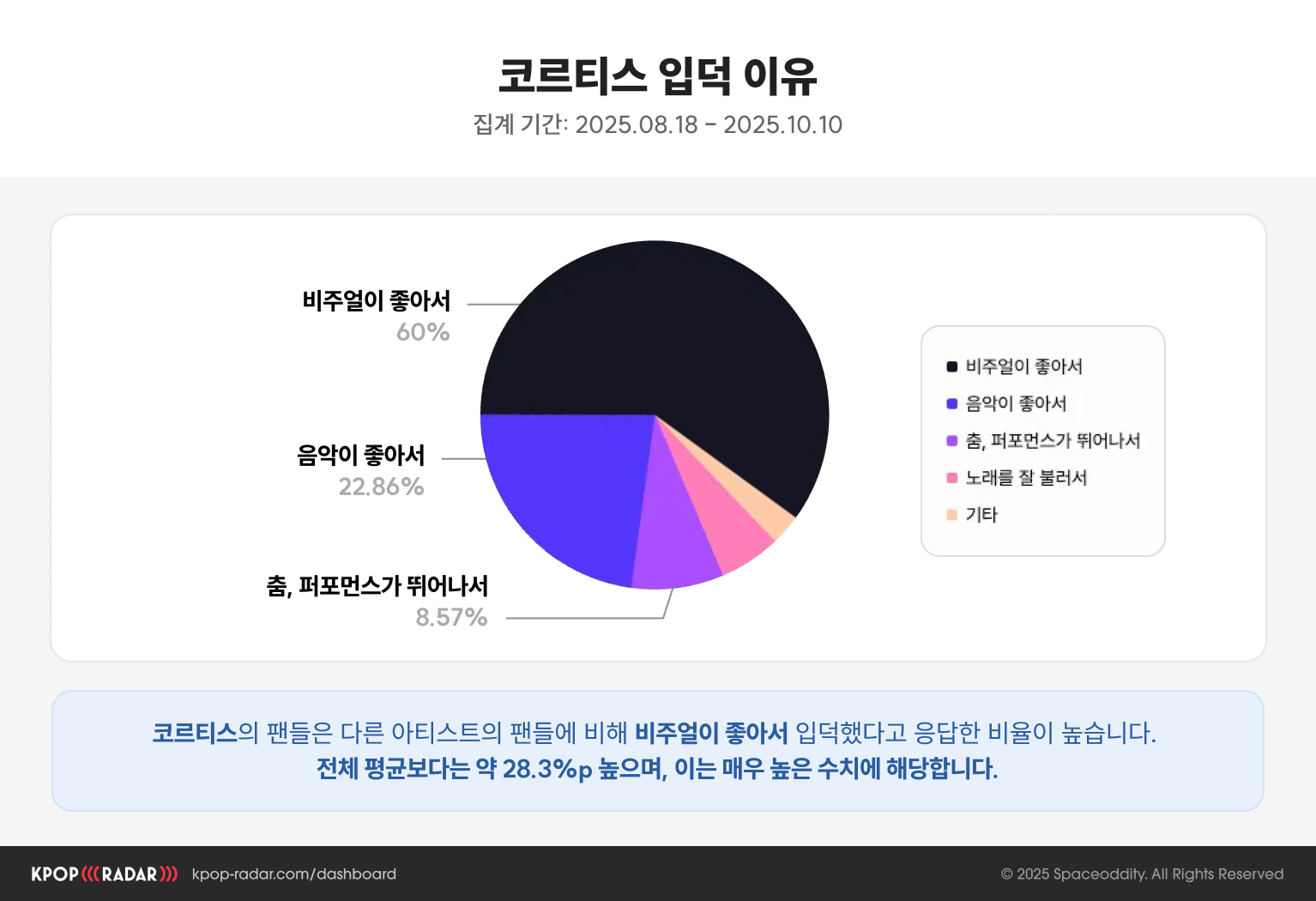 ๋ ์ด์ ๋ก ๊ผฝ์์ผ๋ฉฐ, ์ด๋ ๋ค๋ฅธ ์ํฐ์คํธ ํ๊ท ๋ณด๋ค ์ฝ 28.3%p ๋์, ๋งค์ฐ ๋์ ์์น์