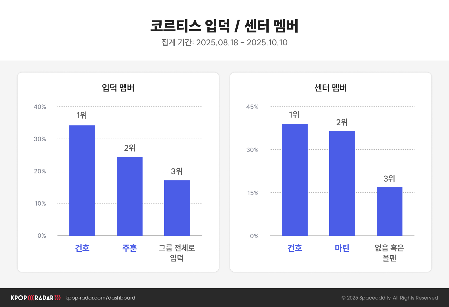 ์ผํฐ ๋ฉค๋ฒ๋ก ์๊ฐ๋๋ ๋ฉค๋ฒ๋ ๊ฑดํธ๊ฐ 1์๋ฅผ ์ฐจ์งํ๊ณ , 2์์ธ ๋งํด์ด ๊ทผ์ํ ์ฐจ์ด๋ก ๋ค๋ฅผ ์๊ณ ์์ต๋๋ค. ๋ ๋ฉค๋ฒ๊ฐ ํ์ ์ ์ฒด์ฑ์ ๊ตฌ์ถํ๊ณ ์๋ ๊ฒ์ผ๋ก ๋ณด์ด๋ค์.