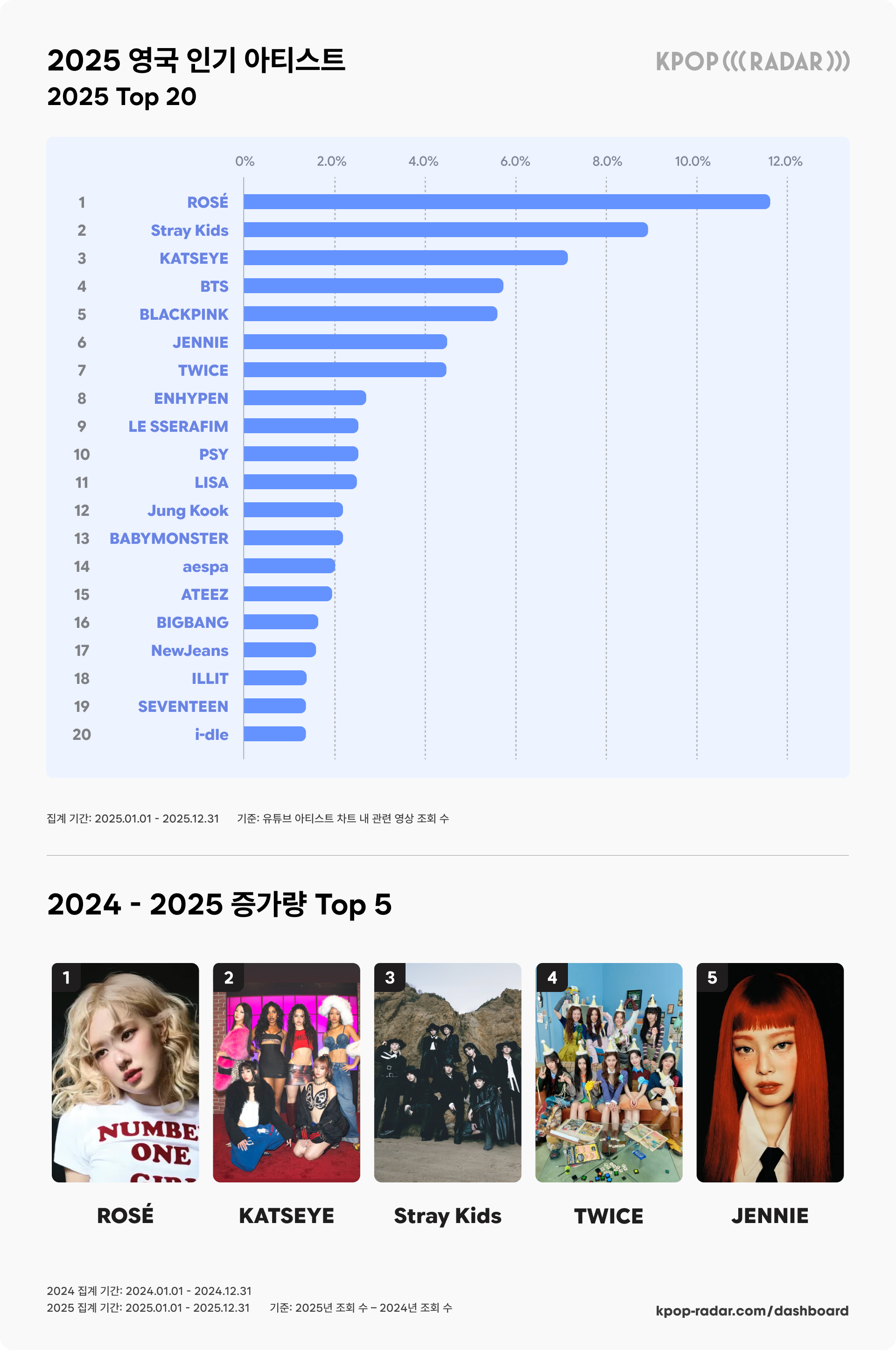 ๋จ, ๋ธ๋ํํฌ๊ฐ ์์๊ถ์ ์งํค๋ ๊ฐ์ด๋ฐ ์์คํ์ ์์ด๋ค ๋ฑ ๋ค์ํ ๊ทธ๋ฃน๋ค์ด Top 20์ ํฌ์งํ๊ณ ์์ผ๋ฉฐ, ์๊ตญ์ด ์ ๋ฝ ๋ด ์ผ์ดํ ์ฑ์ฅ์ ์ ๋ต์ ์์ถฉ์ง๋ก ๋ถ์ํ ์ ์์์ง ๊ท์ถ๊ฐ ์ฃผ๋ชฉ๋ฉ๋๋ค. |